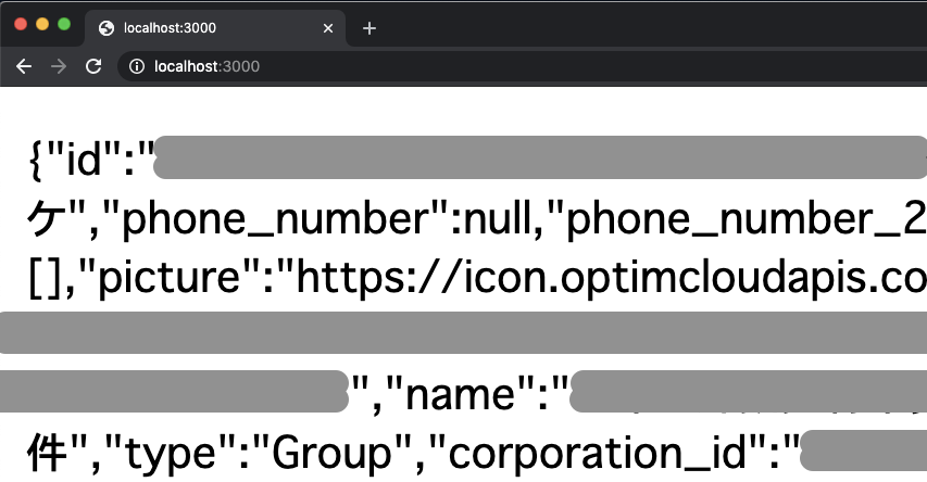 認可を行うと、アプリケーションへ戻りAccountAPIの /me を叩いた結果が得られます。